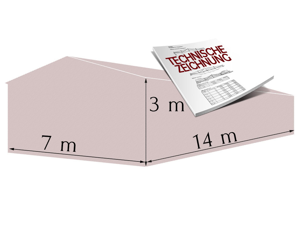 - Satteldach-Spitzdach: aus Trapezblech verzinkt beidseitig 0,45 mm